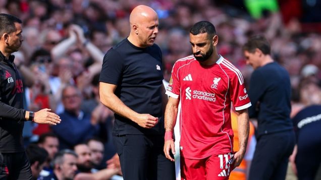 33歲的薩拉赫離場時,收獲全場利物浦球迷起立鼓掌致意。他在場邊與主帥交流時面露痛苦。薩拉赫早已官宣賽季結(jié)束離隊,提前一年終止周薪35萬英鎊的合同,目前俱樂部仍未確認他傷病的嚴重程度。